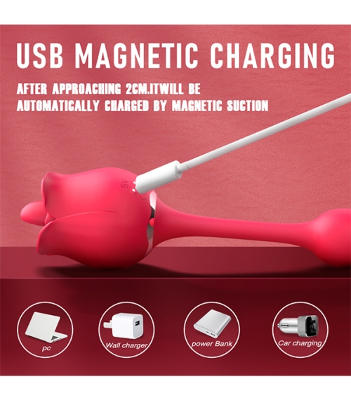 The clitoris-sucking vibrator is shaped like a rose. It is stylish and portable, USB charging for easy travels.